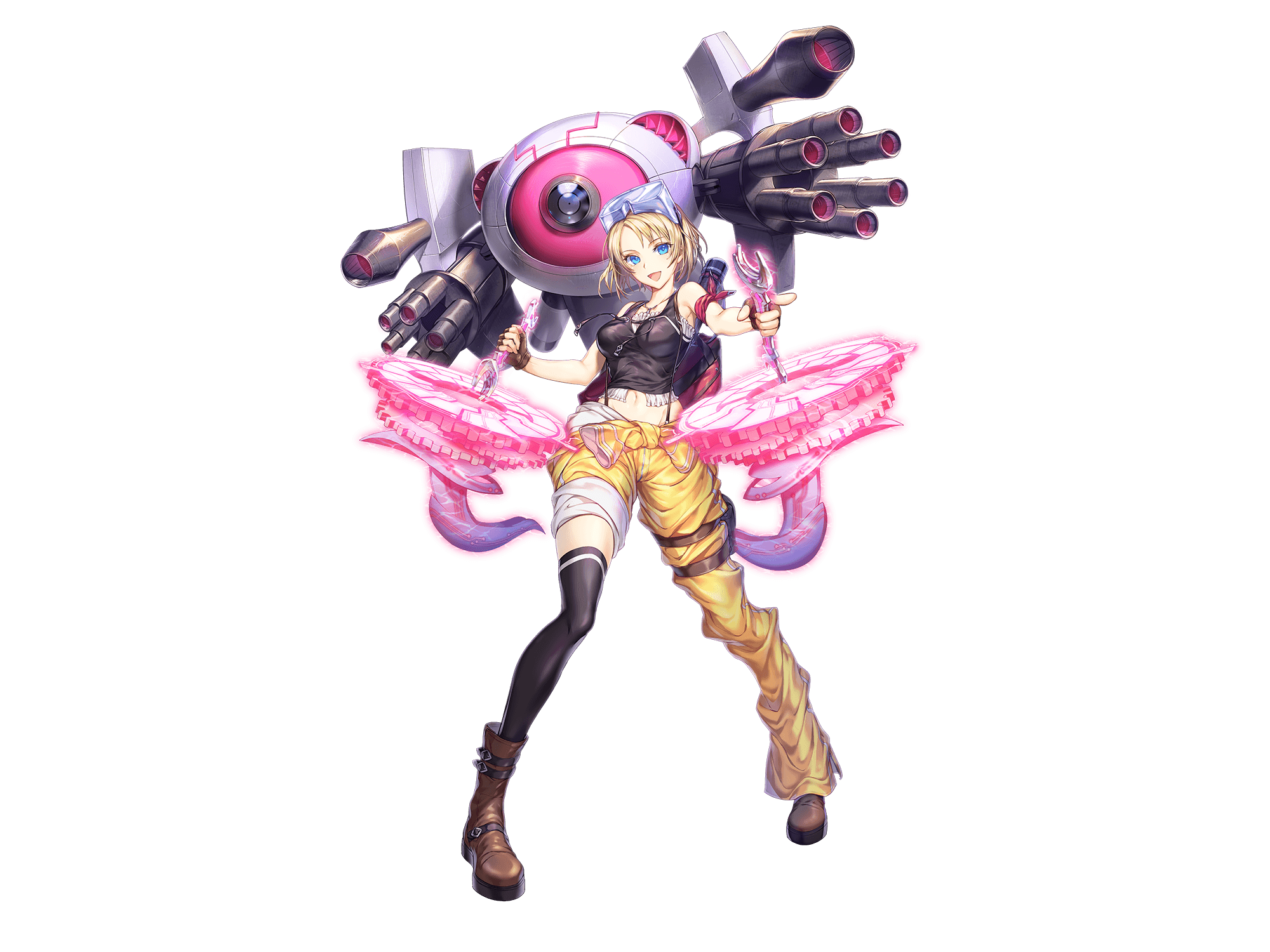 解体好きの変人発明家。故郷に活気を取り戻すため、外敵に対抗しうるメカを開発するも、試作品ばかりで完成には至らず。 また、常人には理解出来ない発明ばかりで、ただの変なメカと見られることもしばしば。 解体行為自体に喜びを覚えているが、結局仕組みはよく分からないまま。